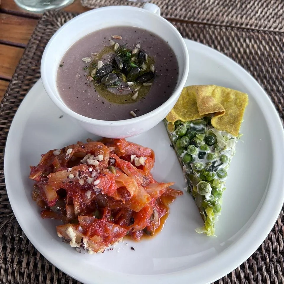 Cibo biologico a km zero, ispirato agli insegnamenti del Dottor Berrino e della MacroMediterranea, condita con punte di cucina indiana e locale. Ingredienti locali preparati con amore energeticamente equilibrati e sani in modo da sostenere le pratiche.
